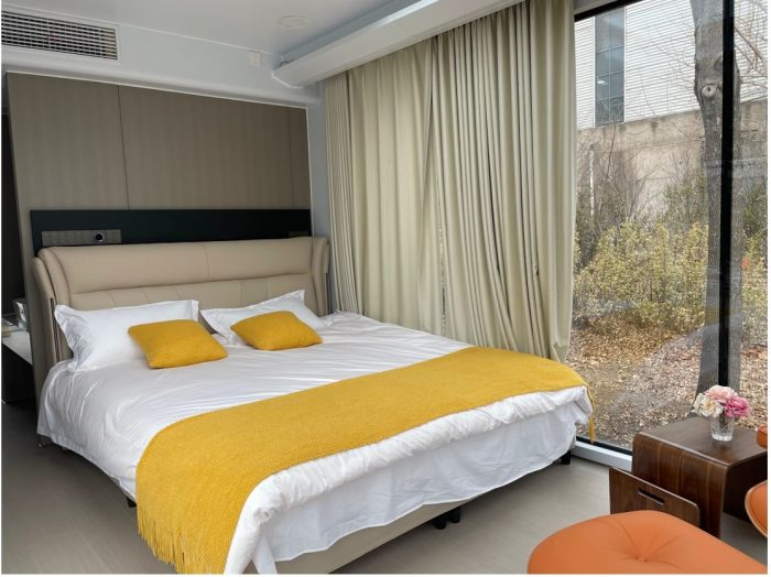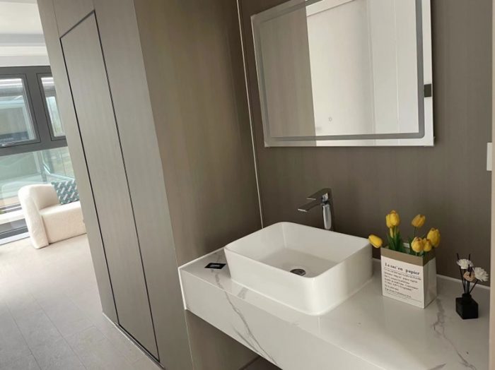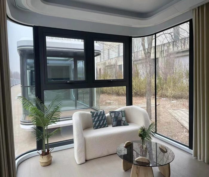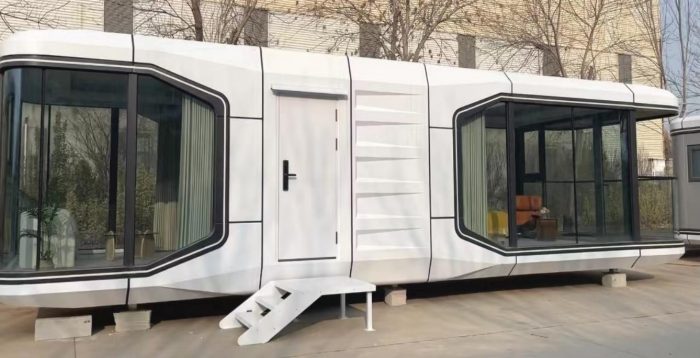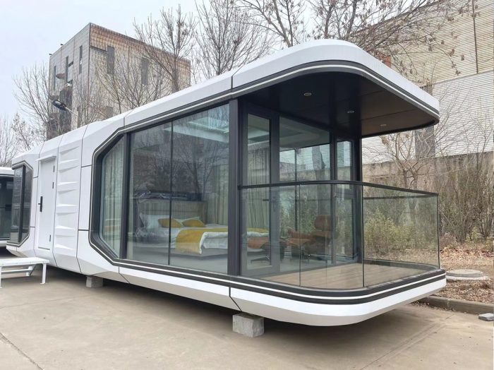 Luxurious and Modern design capsule house Comprise of Bed Rooms, Panoramic Balcony, Kitchen with stylish cupboards , Bath and Modern design Toilet.Â